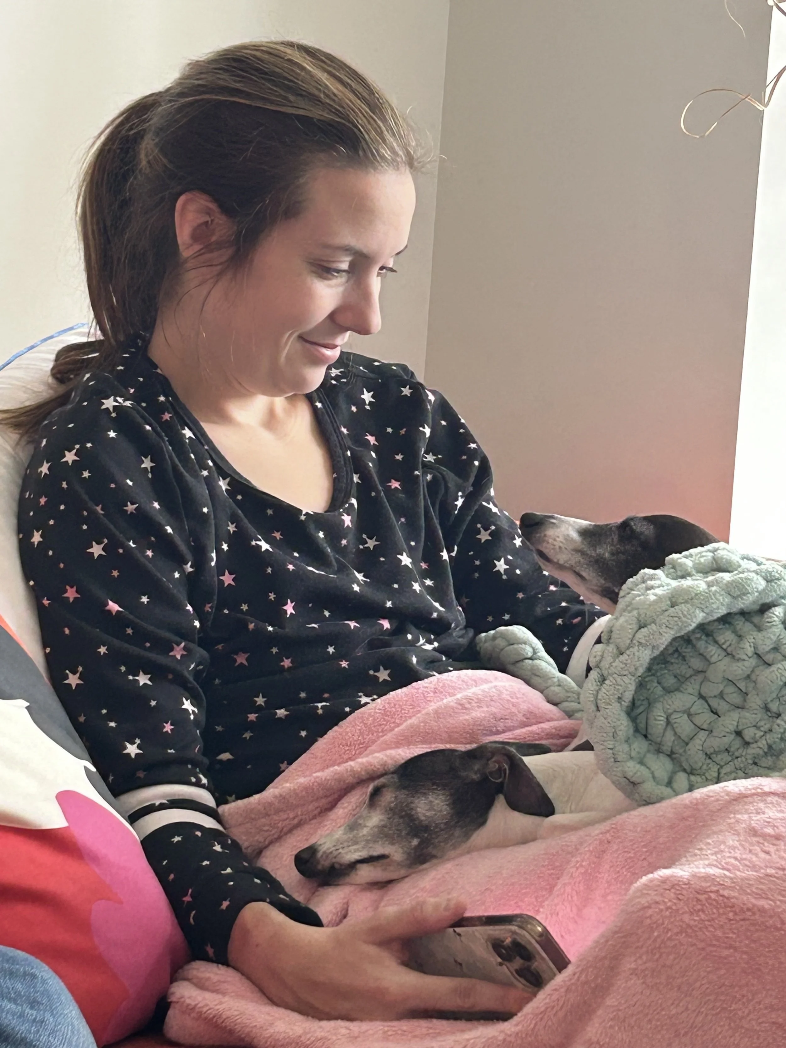 That weekend was mostly spent on the couch, snuggling my Italian greyhounds, Hiroshi and Pocky (if you’re new here…welcome, they’re the real stars), and trying not to vomit. I could barely keep down food or fluids. Nothing felt right.